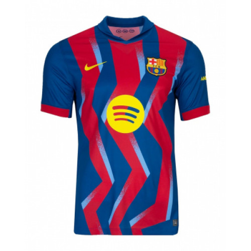Четвёртая форма «Барселоны» сезона 2025/26 от Nike сочетает классические клубные цвета с современным графическим акцентом. Динамичные зигзагообразные полосы в оттенках синего и гранатового символизируют энергию и страсть болельщиков. Яркий логотип Spotify и жёлтые элементы подчёркивают контраст и свежесть дизайна. Материал с технологией Dri-FIT ADV обеспечивает идеальную посадку, лёгкость и отличную вентиляцию — для максимального комфорта на поле и вне его.