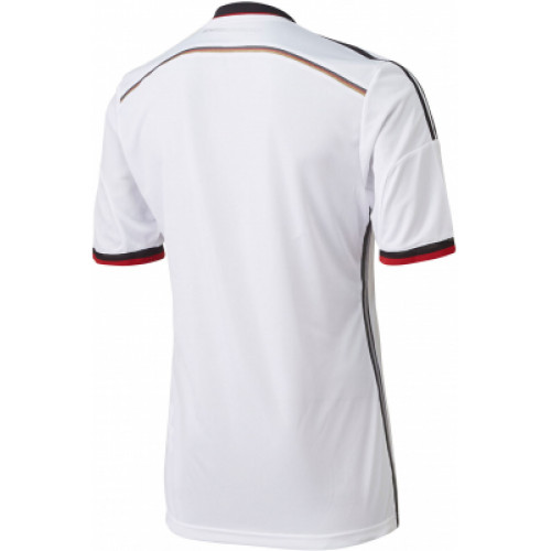 Домашняя форма сборной Германии в стиле ЧМ 2014 - белая джерси с фирменной красно-чёрной “галочкой” на груди и тонким золотистым акцентом, которая сразу ассоциируется с тем самым чемпионским турниром. Дизайн выглядит винтажно и узнаваемо: чистый белый фон, контрастная графика и эмблема DFB с тремя звёздами создают классический образ, который отлично смотрится и на матчах, и в повседневном спортивном стиле. Хороший выбор для фанатов сборной Германии и коллекционеров формы эпохи ЧМ 2014.