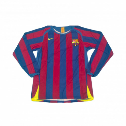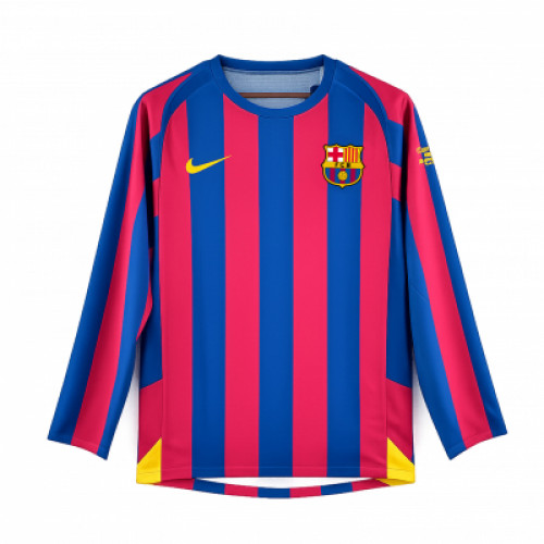 Ретро джерси FC Barcelona сезона 2005/06 с длинным рукавом - классические сине-гранатовые вертикальные полосы и яркие жёлтые детали, которые сразу дают тот самый олдскульный вайб Барсы. Дизайн максимально узнаваемый и контрастный, отлично смотрится на фото и в повседневных образах, если хочется легендарную эпоху клуба. Хороший вариант для фанатов Барселоны и коллекции ретро формы.