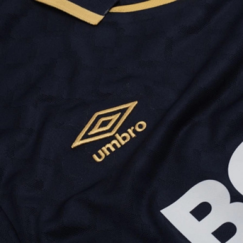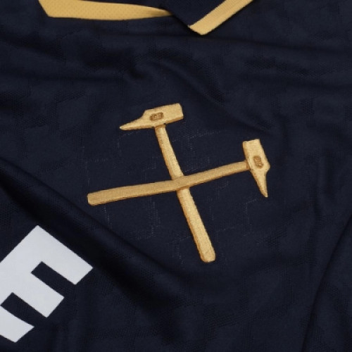 Новая третья форма «Вест Хэм Юнайтед» 2025-2026 выполнена в темно-синем цвете с золотыми вставками и жаккардовым узором по всей площади футболки. . Погрузитесь в мир футбольного энтузиазма и покажите свою любовь к футболу с нашей стильной мужской футболкой, которая создана для настоящих фанатов! Если ты — преданный поклонник Вест Хэма то эта футбольная футболка станет отличным дополнением к твоему гардеробу. Яркий дизайн и высококачественные материалы делают её идеальным выбором как для матчей, так и для повседневной носки.
