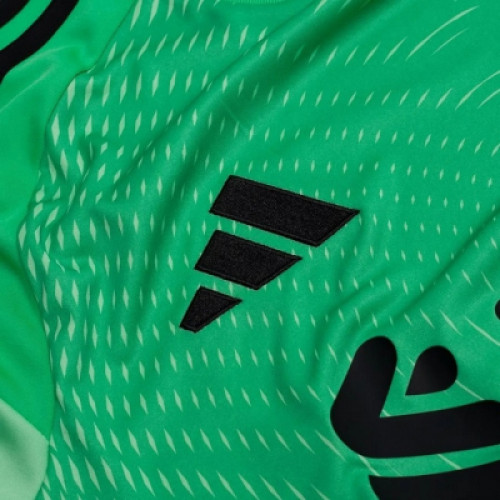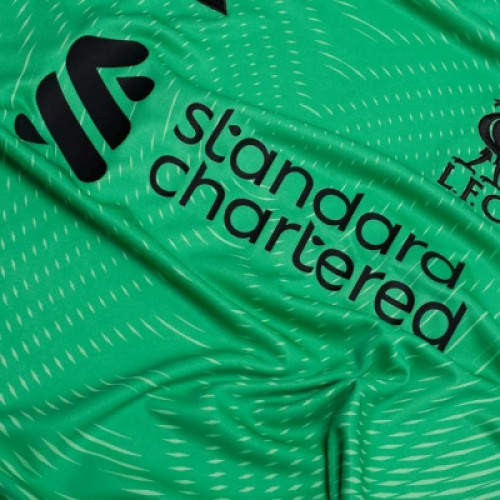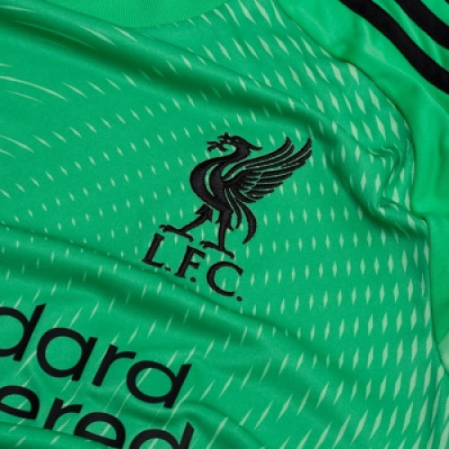 Вратарская футболка английского ФК Ливерпуль для игр сезона 2025-2026. Выполнена в зеленом цвете с черными логотипами. Украшена эмблемой клуба на груди