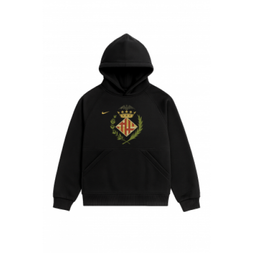 На этом худи — эмблема «Барселоны» времён 1899–1910 годов, один из первых гербов клуба. Лаконичный, строгий и аутентичный, он переносит нас в эпоху, когда футбол только выходил на улицы, а символ команды был не про маркетинг, а про идентичность. Сегодня такой дизайн работает как универсальный элемент уличного стиля. Чёрное худи легко вписывается в любой образ — от джинсов и кроссовок до более смелых сочетаний. Хлопок 65% Полиэстер 35%