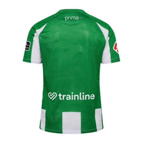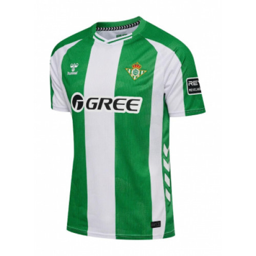 Домашняя форма «Реал Бетис» сезона 2025/26 от Hummel сохраняет традиционные зелёно-белые вертикальные полосы — символ андалусийской идентичности клуба. На груди размещены эмблема Бетиса и логотип спонсора GREE, а фирменные стрелы Hummel на боках и плечах подчёркивают динамику дизайна. Воротник выполнен с аккуратной вставкой и внутренним паттерном в виде клубного лозунга. Лёгкий, эластичный материал с технологией BeeCool обеспечивает отличную вентиляцию и комфорт даже во время самых напряжённых матчей.